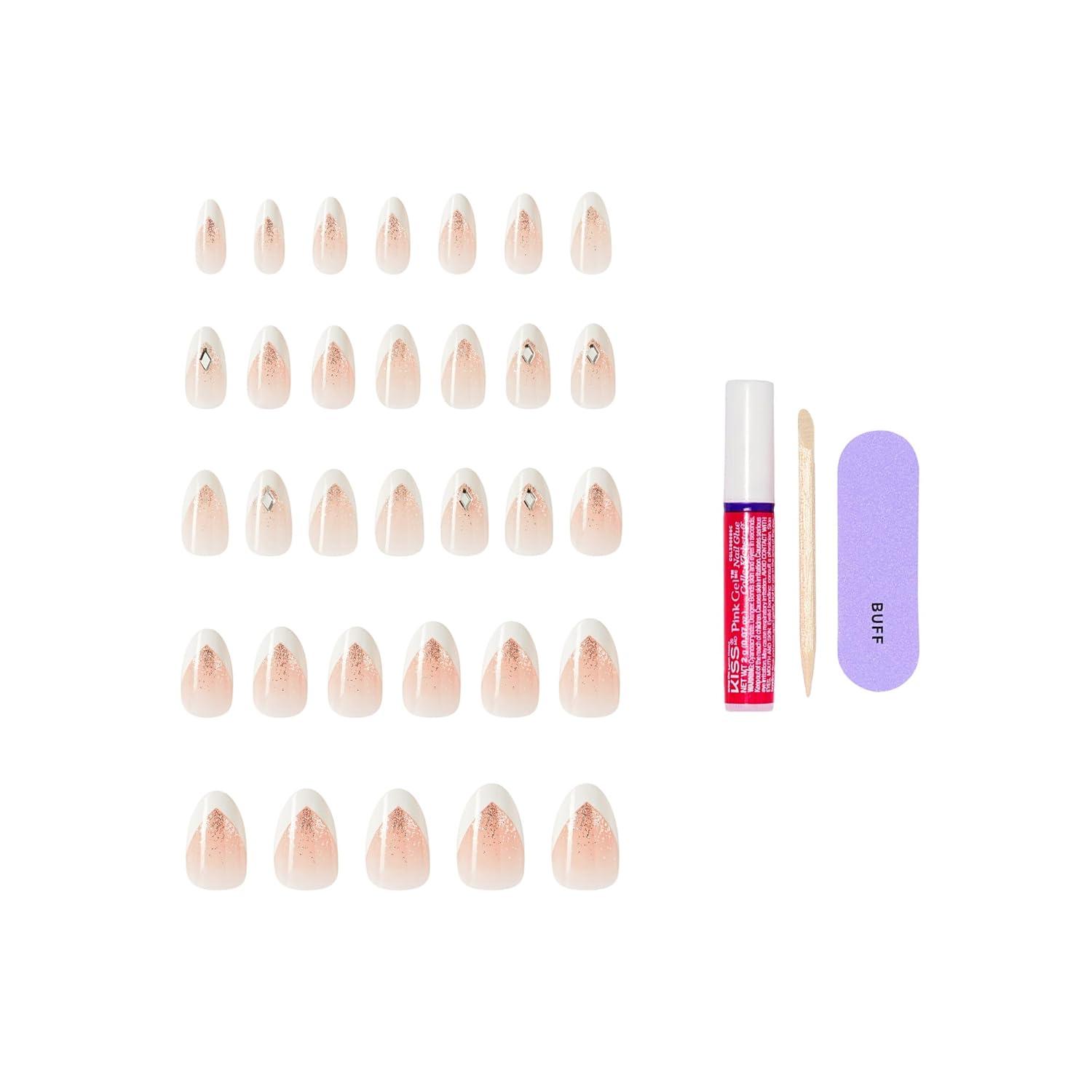 NEW Look. MORE Nails. BETTER Fit. For those who love to stand out, KISS GLAM 3D Press On Nails are embellished with sparkling jewel stones and sculpted 3D designs that turn every moment into a statement—day or night! KISS GLAM Press On Nails include more nails in a wider variety of sizes for an enhanced natural fit. Experience a flawless look that lasts up to 14 days. Enjoy unmatched quality with no damage to your natural nails.
