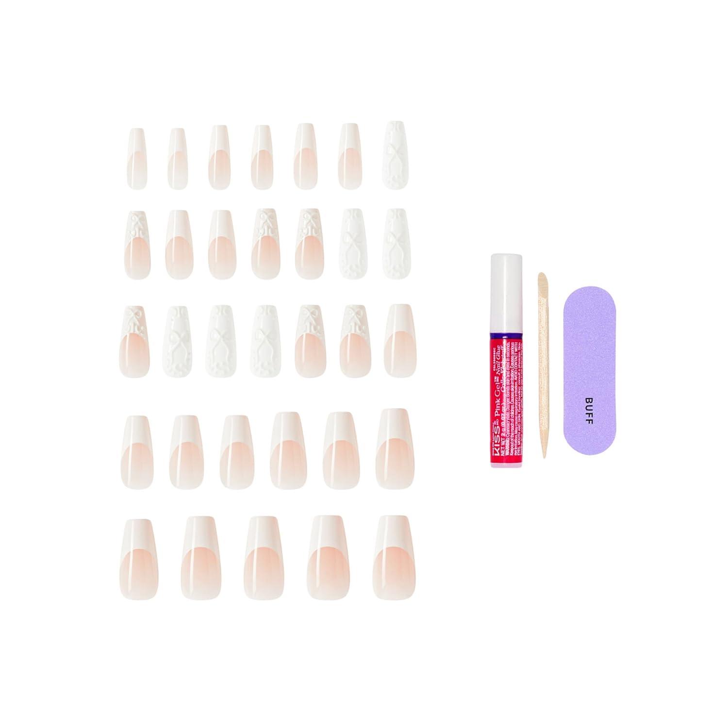 NEW Look. MORE Nails. BETTER Fit. For those who love to stand out, KISS GLAM 3D Press On Nails are embellished with sparkling jewel stones and sculpted 3D designs that turn every moment into a statement—day or night! KISS GLAM Press On Nails include more nails in a wider variety of sizes for an enhanced natural fit. Experience a flawless look that lasts up to 14 days. Enjoy unmatched quality with no damage to your natural nails.