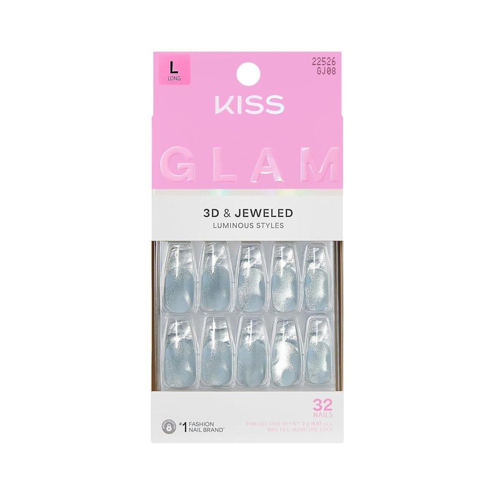 NEW Look. MORE Nails. BETTER Fit. For those who love to stand out, KISS GLAM 3D Press On Nails are embellished with sparkling jewel stones and sculpted 3D designs that turn every moment into a statement—day or night! KISS GLAM Press On Nails include more nails in a wider variety of sizes for an enhanced natural fit. Experience a flawless look that lasts up to 14 days. Enjoy unmatched quality with no damage to your natural nails.