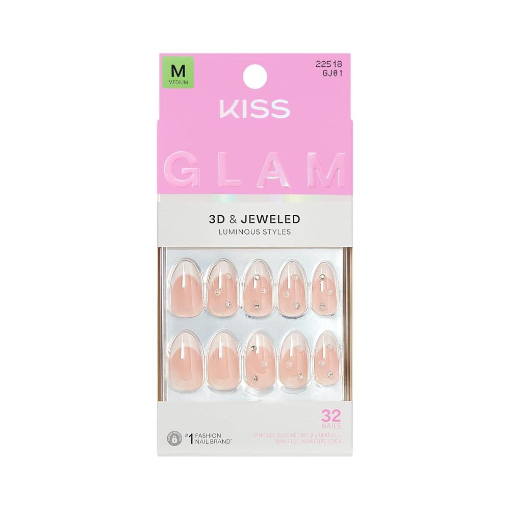 NEW Look. MORE Nails. BETTER Fit. For those who love to stand out, KISS GLAM 3D Press On Nails are embellished with sparkling jewel stones and sculpted 3D designs that turn every moment into a statement—day or night! KISS GLAM Press On Nails include more nails in a wider variety of sizes for an enhanced natural fit. Experience a flawless look that lasts up to 14 days. Enjoy unmatched quality with no damage to your natural nails.