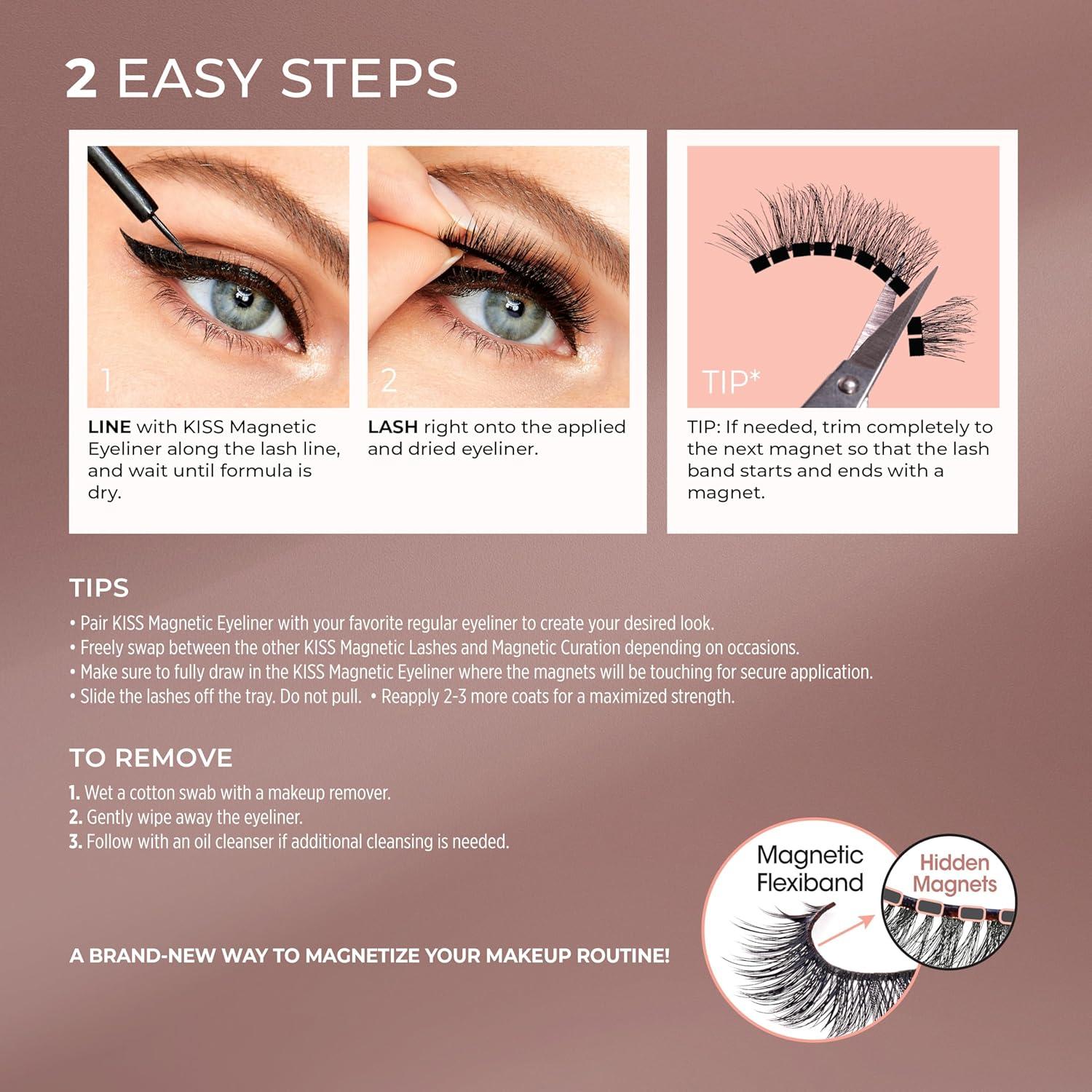 Experience the Attraction: KISS Magnetic Lashes featuring magnets on the top and bottom lash bands stay perfectly in place until you remove them; Lightweight bottom lash for super comfort; Reusable, contact lens friendly & cruelty free