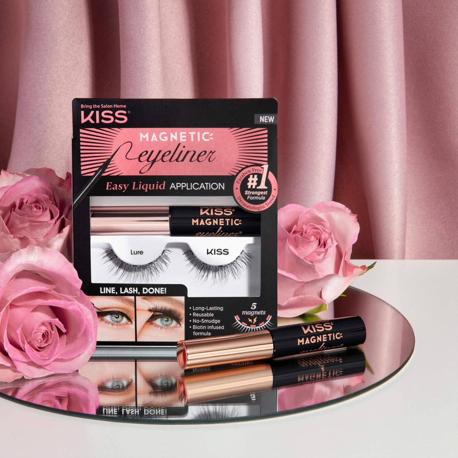KISS Magnetic Lash 01, Synthetic False Eyelashes with Magnets Under and Over Your Upper Lashes, No Glue Needed, Lightweight, Reusable, Contact Lens Friendly, Cruelty Free, with Lash Applicator, 1 Pair(Magnetic Eyeliner)