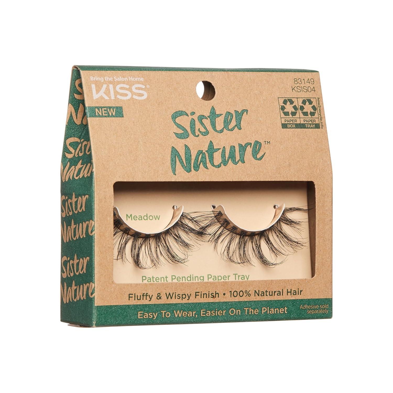 Kiss Lashes Sister Nature False Eyelashes,Easy To Wear & Easier On The Planet,100% Natural Hair,Wispy And Fluffy Lash Finish,Reusable – Style ‘Sage’,1 Pair