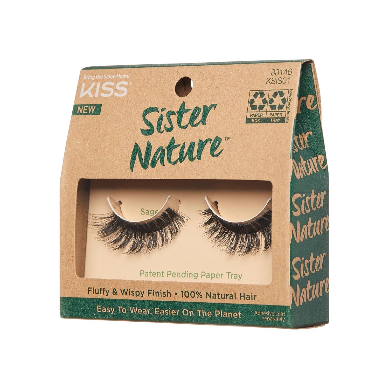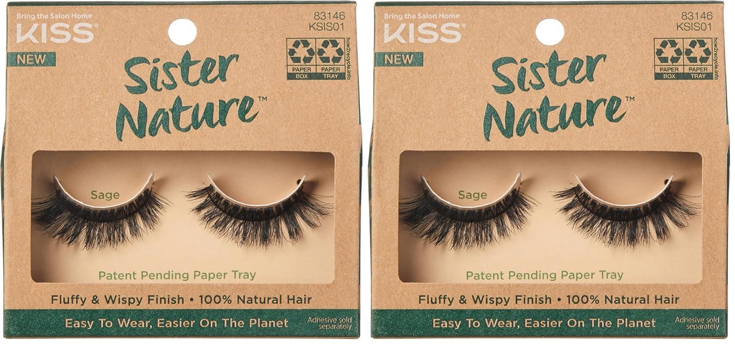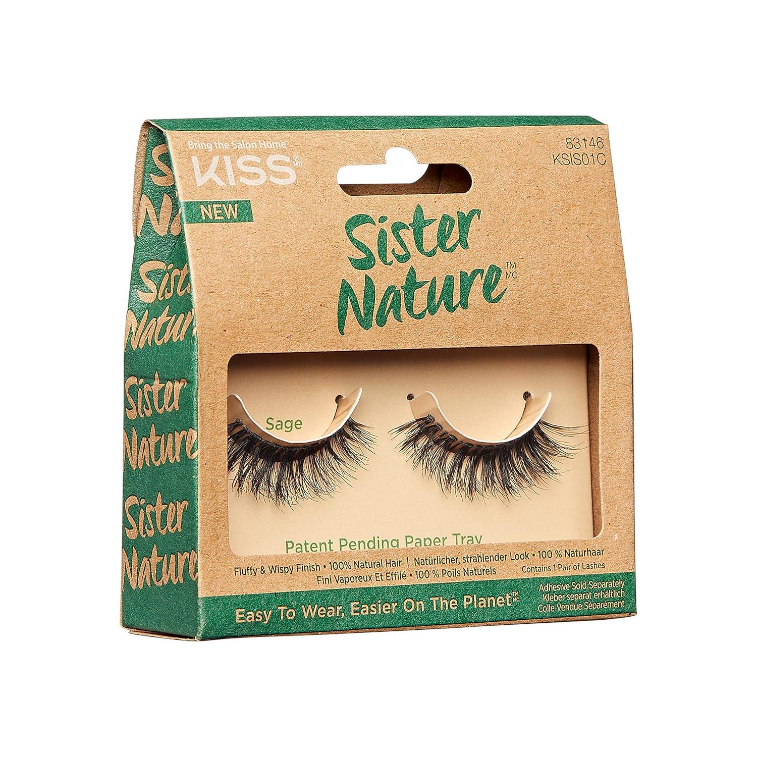 Kiss Lashes Sister Nature False Eyelashes,Easy To Wear & Easier On The Planet,100% Natural Hair,Wispy And Fluffy Lash Finish,Reusable – Style ‘Sage’,1 Pair