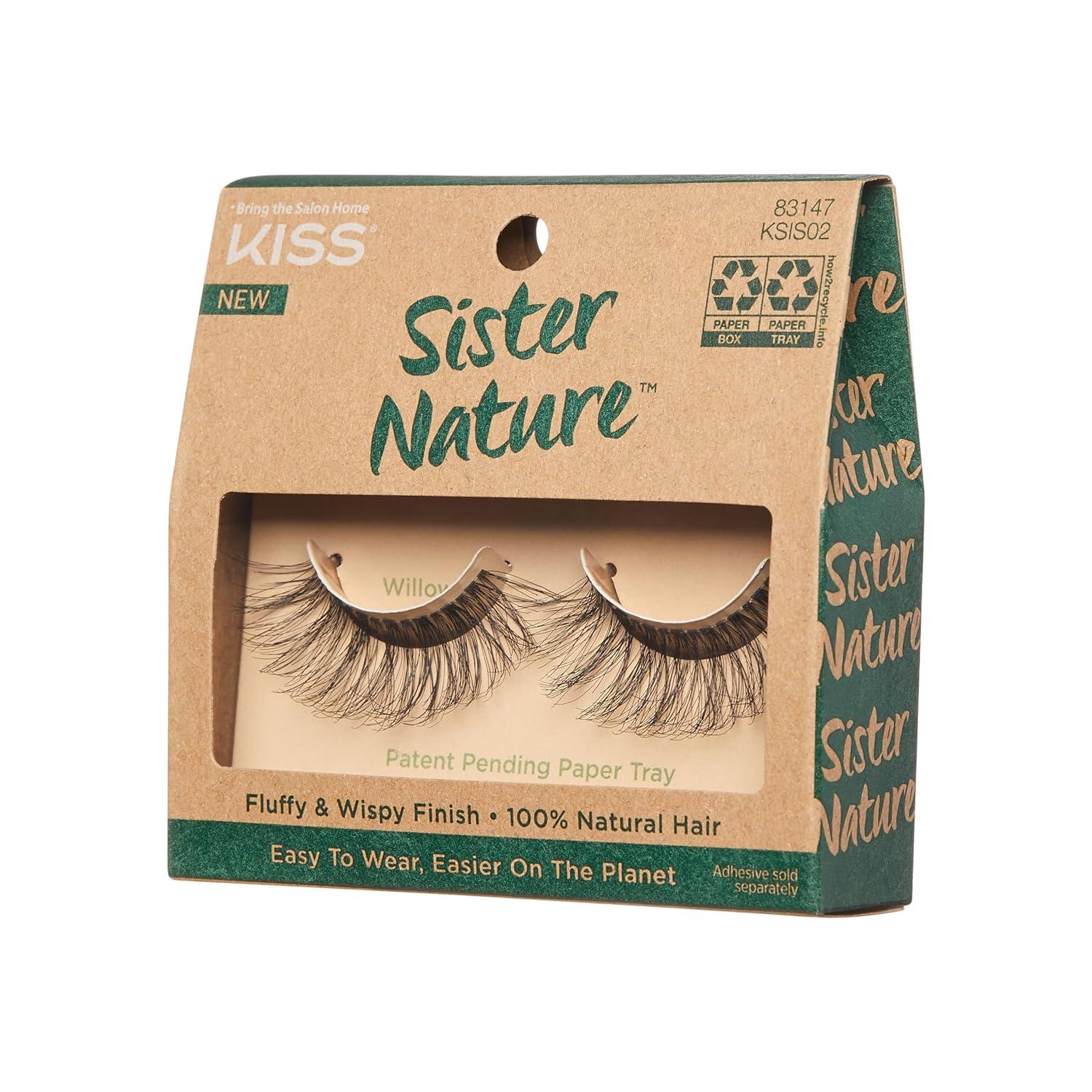 Kiss Lashes Sister Nature False Eyelashes,Easy To Wear & Easier On The Planet,100% Natural Hair,Wispy And Fluffy Lash Finish,Reusable – Style ‘Sage’,1 Pair