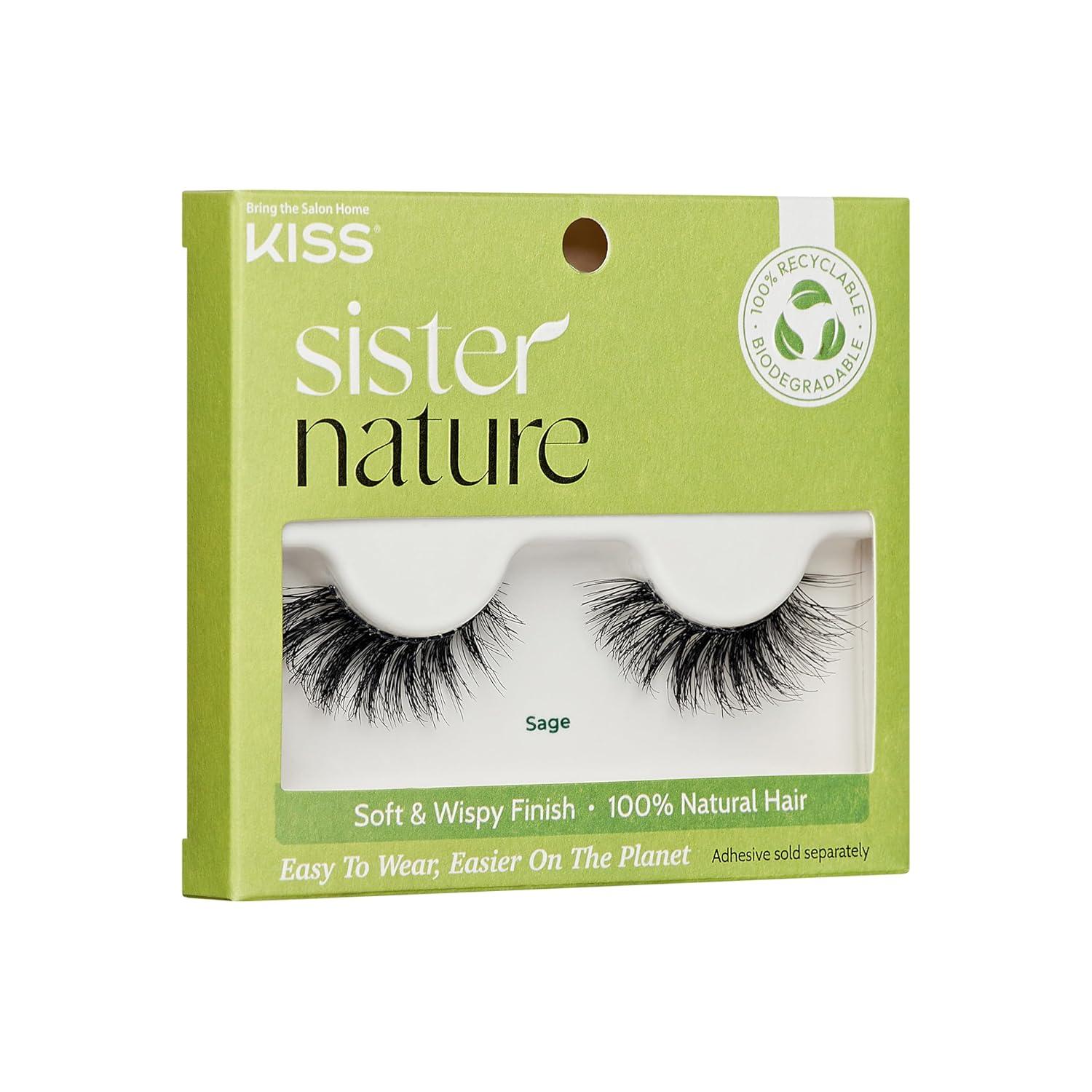 Lightweight, soft, and alluringly wispy, KISS Sister Nature False Eyelashes are easy to wear and even easier on the planet. These eco-friendly organic false eyelashes are made of 100% natural human hair with a fluffy and feathery finish. Sister Nature is the natural way to lash. Recyclable paper box printed with biodegradable soy ink and a reduced PET plastic tray. Use with Sister Nature Strip Lash Adhesive, sold separately, in black and clear options.