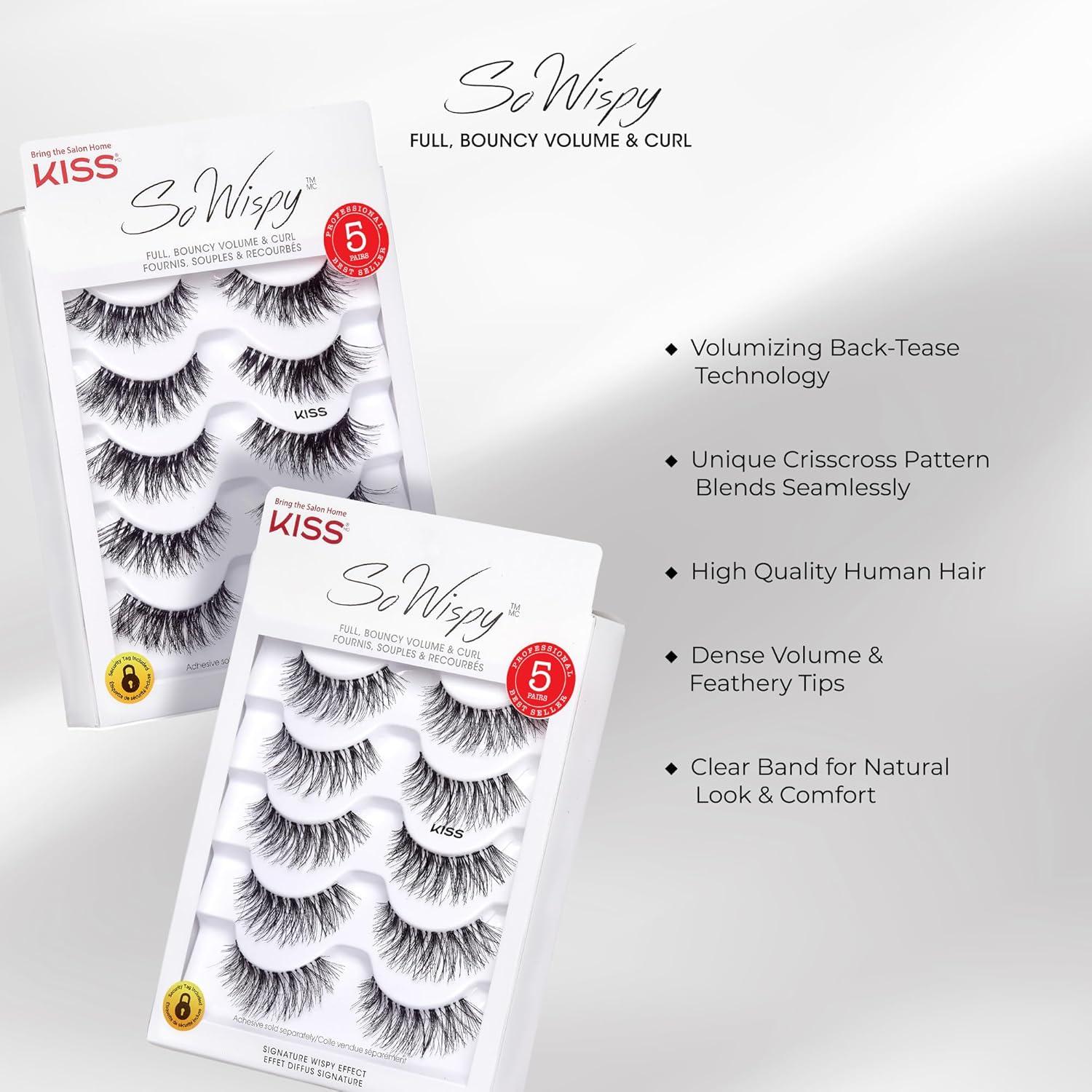 KISS So Wispy False Eyelashes, Pixie, Black, 5 Pairs Lashes