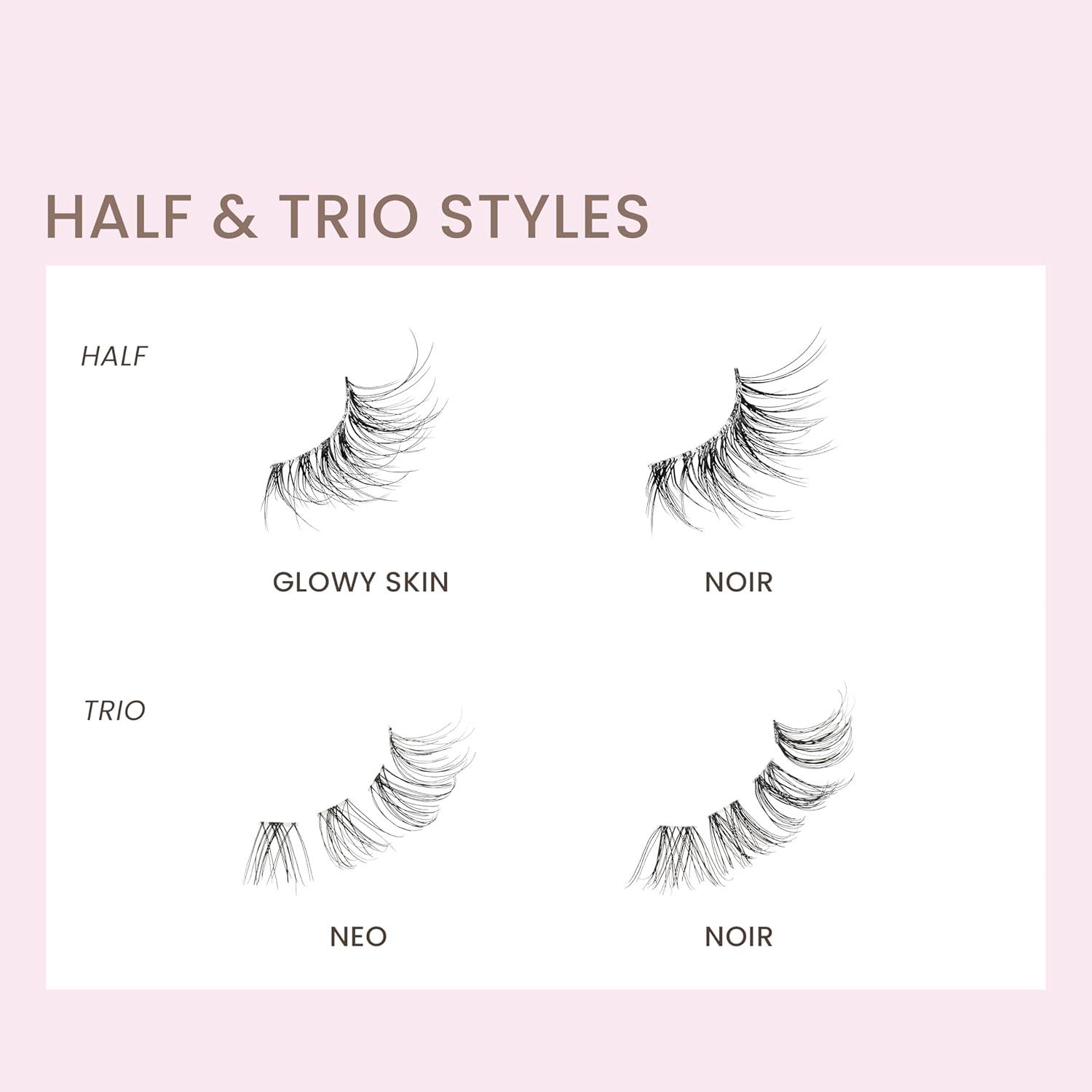 Versatile Options: Available in single packs, half-lash single packs, trio clusters, and 4-pair multipacks. Whether you're aiming for a subtle enhancement or a more pronounced look, these lashes provide versatile solutions to meet your specific needs.