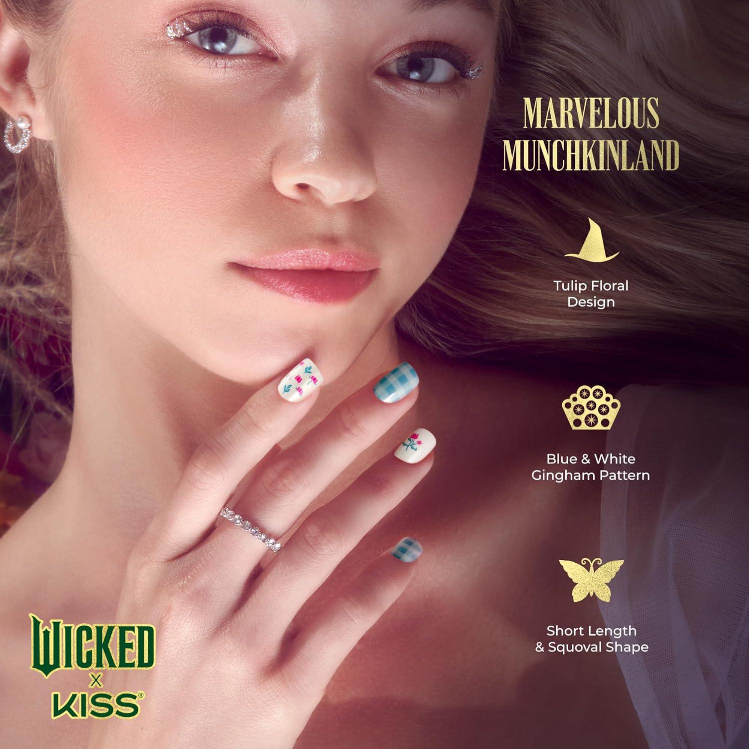 WICKED X KISS Press-On Nails – Waterproof, Chip-Resistant & Smudge-Proof, 28 Count Fake Nail(Marvelous Munchkinland)